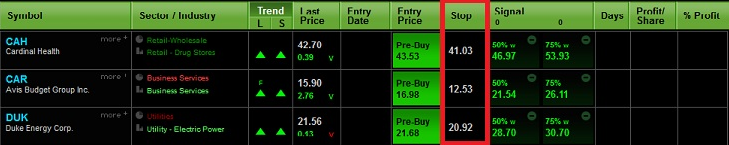 (CAH, CAR, and DUK are not recommendations. They are being used to demonstrate the stop loss feature in The Wizard.)