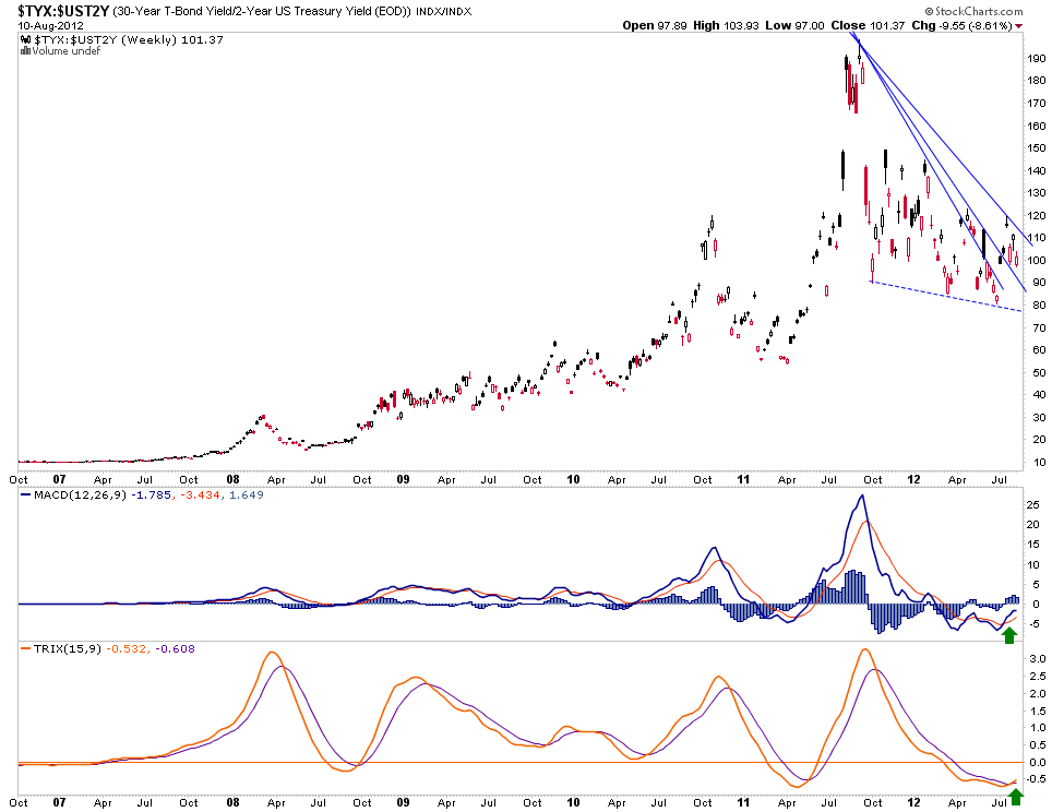 These are questions for another time because as of now, players are looking in other directions. With all the notoriety the metal got in the kickoff to the euro crisis, the current correction had to be; first because the initial momentum thrust had to blow out and then because Operation Twist saw to it that an important macro indicator was put in place to keep the metal under control. Remember though that wise players get bullish on gold only when it is hated or at least well under control.