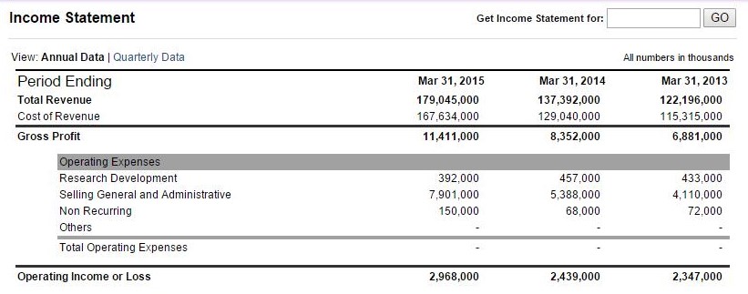Figure 1 – Financials covering 2013 through 2015
