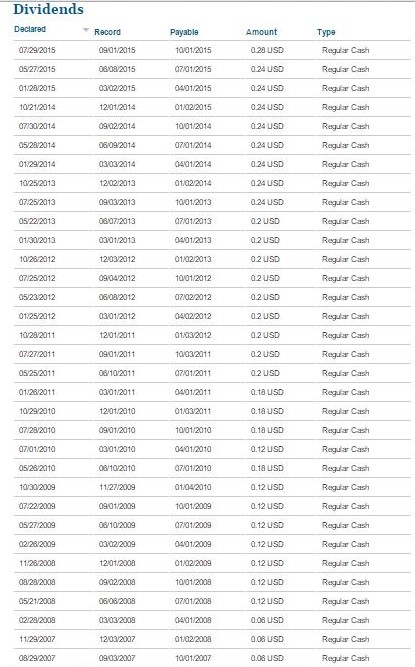Figure 3 – Dividend history of MCK from 2006 through 2015