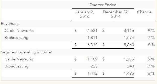 Disney has delivered impressive earnings over the past decade which was highlighted by the most recent quarterly report (Figure 2). Despite the record numbers, analysts have been fixated on the ESPN woes and the drop in its cable network and broadcasting segments (Figure 3).