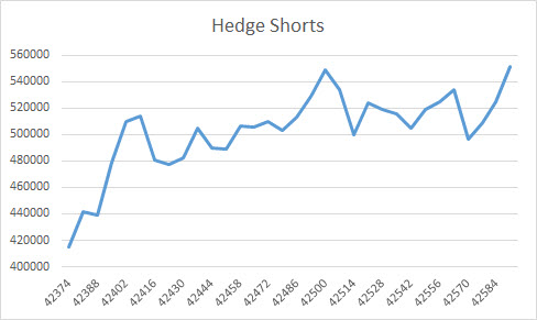 Given the increase in drilling activity and the downtrend in prices this summer, oil producers increased their hedges to the highest level this year. According to the Commodity Futures and Trading Commission (CFTC), short hedges reached 552 million barrels.