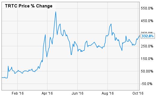 Terra Tech is the only publicly traded cannabis company that owns dispensaries. Terra Tech is having an incredible year. Shares are up 336% in 2016. Take a look below.