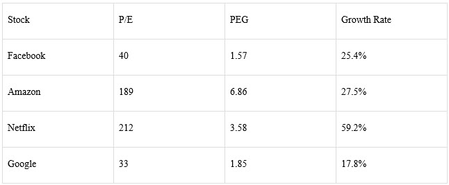 Table 1 - Comprehensive valuation and growth overview of the FANG stocks