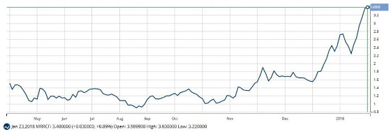 On the chart, Maricann was flat for most of 2017 before surging into a new all-time high in the fourth quarter.