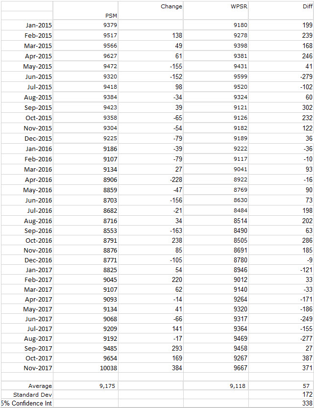 Production has surged by 846,000 b/d from September through November. This increase is far more significant than the one reported by the EIA in its weekly numbers or forecast by the EIA in its monthly STEO. The interpolated weekly figures for November imply a monthly average of 9.667 mmbd, 371,000 b/d lower. And the latest weekly average reported by the EIA was 9.199 mmbd. Clearly, the EIA will need to upwardly revise its weekly model soon, probably in next week’s report.
