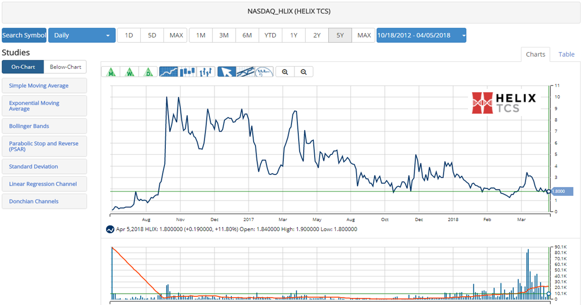 Helix ripped higher after its IPO in late 2016. Since then, shares have been in a steady decline.