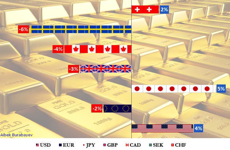 Year-To-Date Dynamics Of Fiat Majors Versus Gold: Safe Havens Win