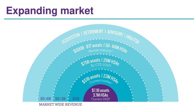 HealthEquity Inc. (HQY) has continued its path of accelerating revenue, cash flow and income growth across all segments of its business in the backdrop of an HSA secular growth market. Despite these great financial metrics, throughout the fourth quarter, the market has become risk-averse, and many high growth names have been met with correction territory. HealthEquity is no exception and has seen over 25% of its market capitalization erased. HealthEquity looks compelling after this healthy correction as the long-term narrative remains intact. The company is debt-free and expanding its balance sheet with just over $330 million in cash and cash equivalents. HealthEquity currently manages $7.1 billion in assets across 3.8 million accounts against a potential market maturity of $1 trillion in assets across 50-60 million accounts. The company is sitting on untapped revenue sources, and gross margin expansion is beginning to bear fruit as accounts age and more funds are channeled into investment vehicles. HealthEquity is continuing to post strong growth as it expands the number of accounts, manages more custodial assets, expands gross margins and more accounts transitioning into investment vehicles. Furthermore, HSAs are serving as a dual purpose as a healthcare containment play while serving as a second 401k as assets can be withdrawn in retirement without plenty fueling the popularity of these accounts.