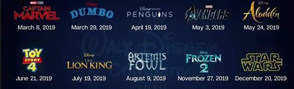 Figure 1 – Disney’s 2019 movie release schedule with potentially eight films that could easily eclipse $1 billion in worldwide box office sales