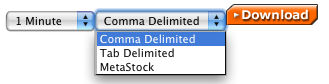 Our Data Central tool will allow you to download data in Comma Delimited, Tab Delimited, Metastock and ASCII format. If you plan to paste this information into a spreadsheet, consider using "Paste Special" to ensure correct formatting through the cells.