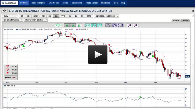 I will be reviewing crude oil (NYMEX:CL.Z14.E) and gold (FOREX:XAUUSDO) to see if there's any changes in their overall direction. Lastly, I will be looking at something that's quite unusual in all three major indices that could be a clue to the next short-term move.