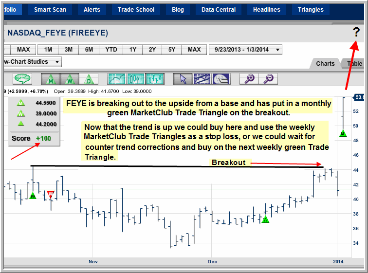 FEYE is put in a new monthly green Trade Triangle on Friday's (1/3/14) breakout. Continue reading "Chart to Watch - NASDAQ:FEYE"