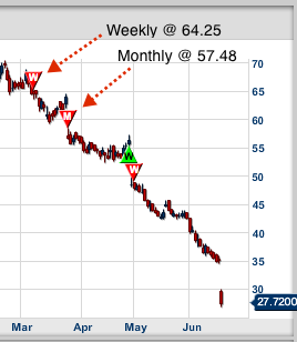 However, MarketClub members came out ahead of the game by simply following the "Trade Triangles" which had us out of RIMM in March at $64.25... a far cry from the high $20 range we're currently trading at.