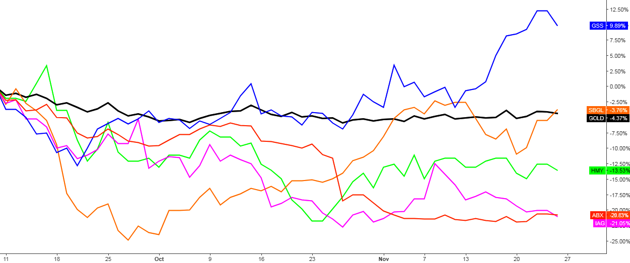 To remind you, the top stock tickers are ABX (Barrick Gold), SBGL (Sibanye Gold), IAG (IAMGOLD), GSS (Golden Star) and HMY (Harmony Gold Mining).
