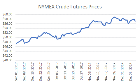 That demand for OPEC oil is based on a gain in demand of 1.52 mmbd and a rise in no-OPEC production of 1.15 mmbd. In my view demand is likely to be a bit stronger due to world economic growth. However, the non-OPEC supply number is much too low, given the recent rise in U.S. production of 886,000 b/d from August through November. (December production was down a bit for seasonal reasons.) Furthermore, U.S. production has yet to respond to $60/b. The rise in output last autumn was a response to $50/b.